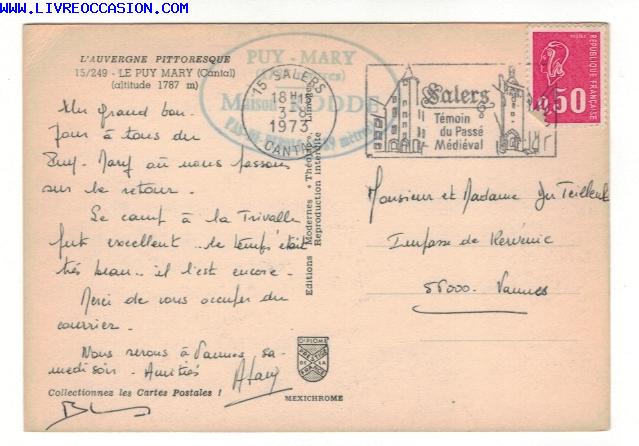 carte postale L'Auvergne pittoresque - LE PUY MARY (Cantal) (altitude 1787 m)Fiche de la carte postale L'Auvergne pittoresque - LE PUY MARY (Cantal) (altitude 1787 m) :